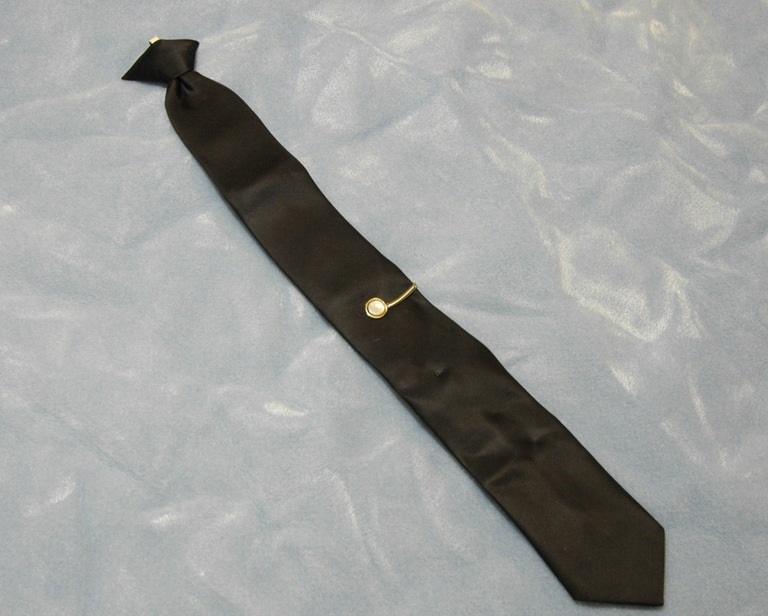 For someone to have clothing containing so many unique metals, alloys, chemicals, and elements, there are not too many professions that would allow for such exposure. One of these professions would certainly have been that of metallurgist. In the 1950’s and 60’s metallurgists in research laboratories wore black clip-on ties. This was the era of Mad Men, so of course if you were a professional sort you absolutely had to wear your tie, even while pulling a sparking chunk of metal out of a forge. The ties were clip-on so that if the tie were to be snagged in a piece of machinery it would instantly come off instead of causing injury or death to the man wearing it.